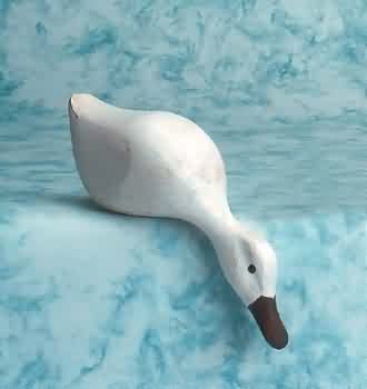 Decoys make great accent pieces. Pick out your Decoys here today This white curious duck measures 4 1/2" high x 12" long. This is balanced so it hangs over a shelf or a mantle but never falls!